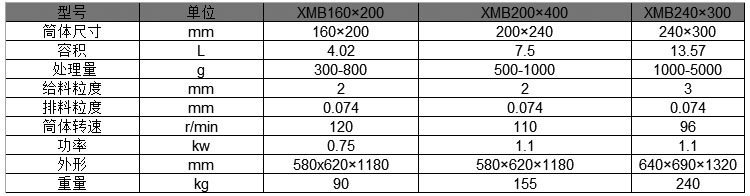 三、實驗室用棒磨機參數